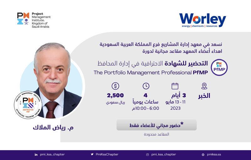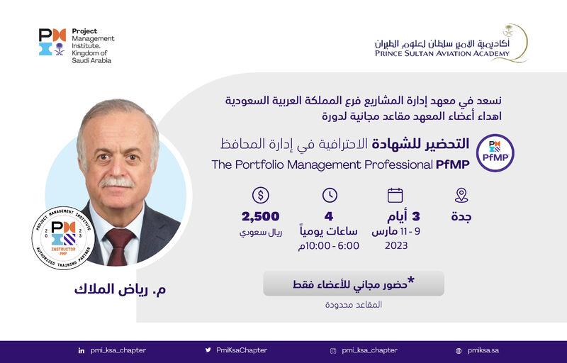 اختتم معهد إدارة المشاريع فرع المملكة العربية السعودية برنامج التحضير للشهادة الاحترافية في إدارة المحافظ والتي تم تقديمها خصيصا لأعضاء المعهد بالمملكة العربية السعودية كجزء من تحقيق المنافع التي يحصل عليها المنضمون للمعهد وتحفيزا وتطويرا لهم لدعم مسيرتهم المهنية في إدارة المشاريع والتطور فيها